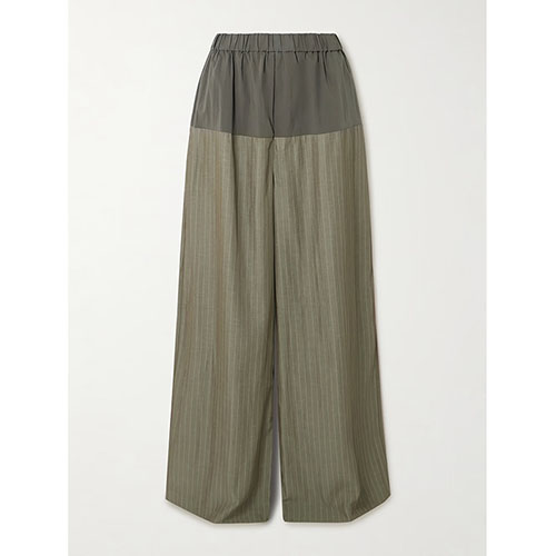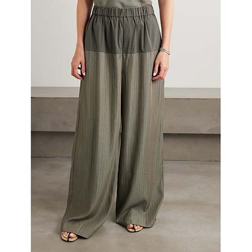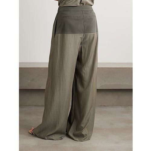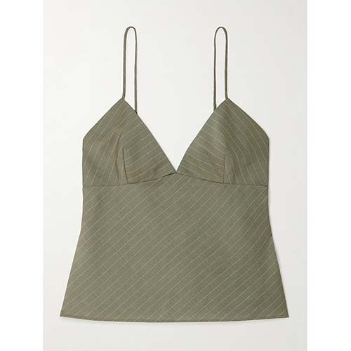 Set Cami Pinstripe & Seluar Lebar Kaki Zaitun Disesuaikan